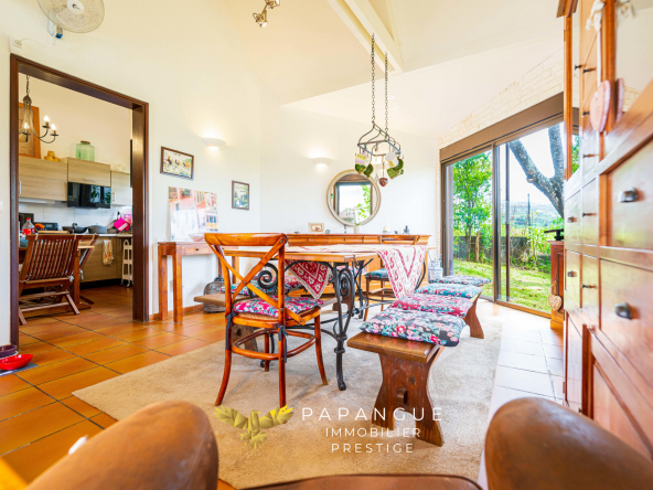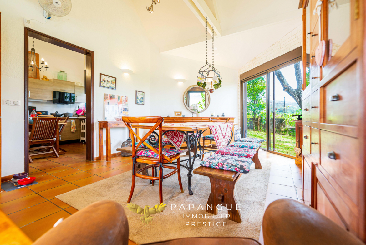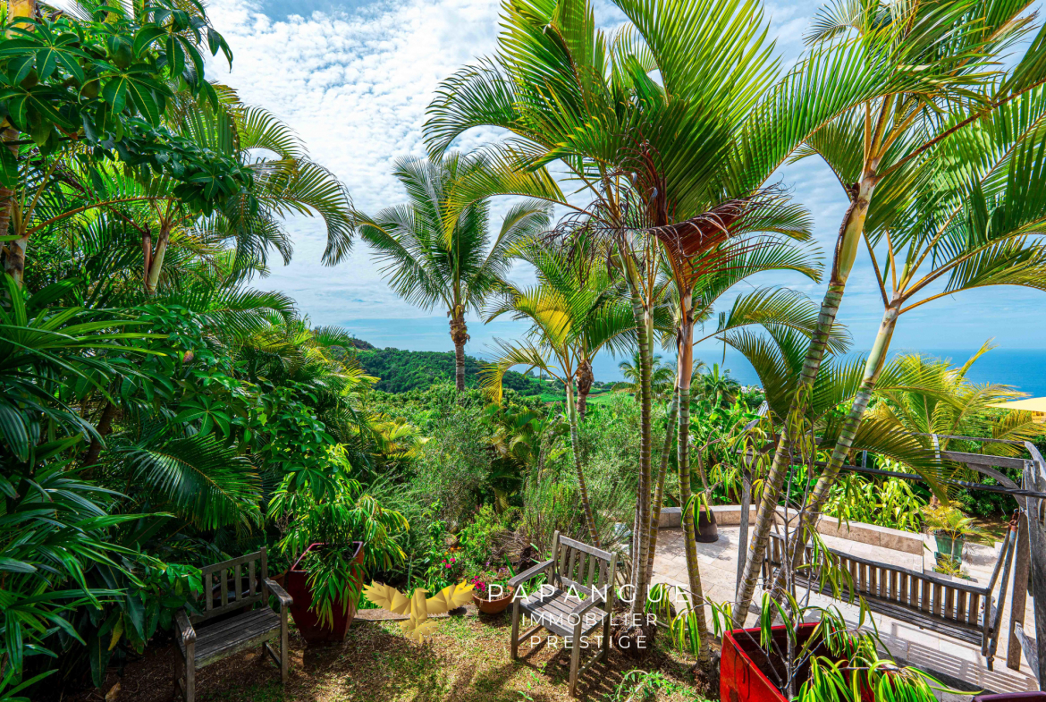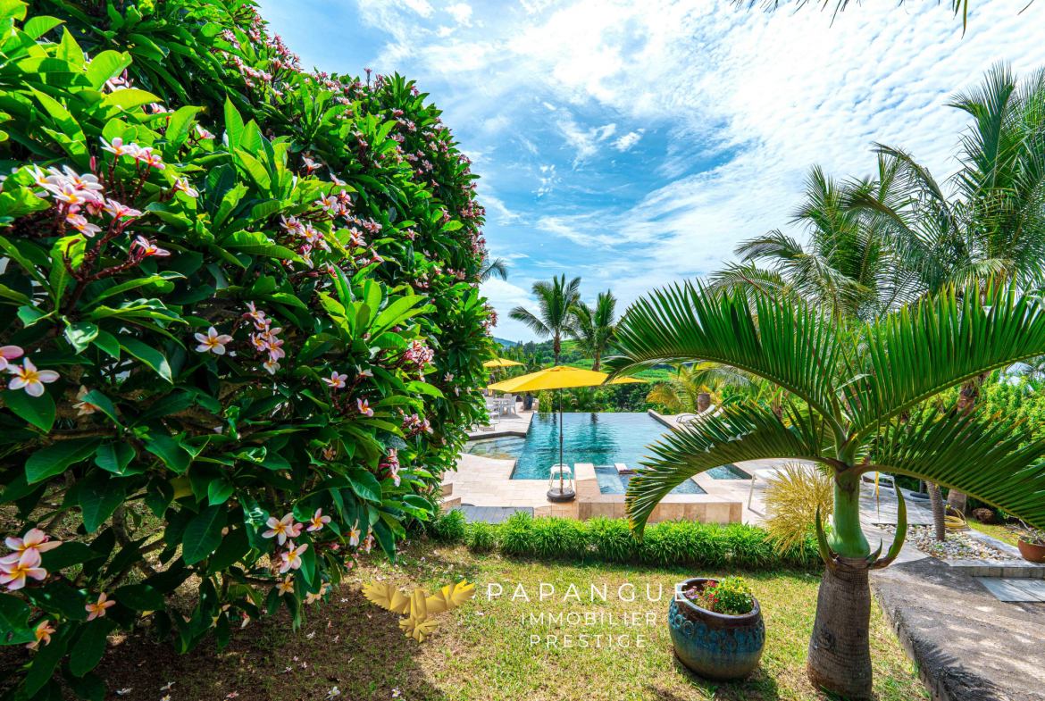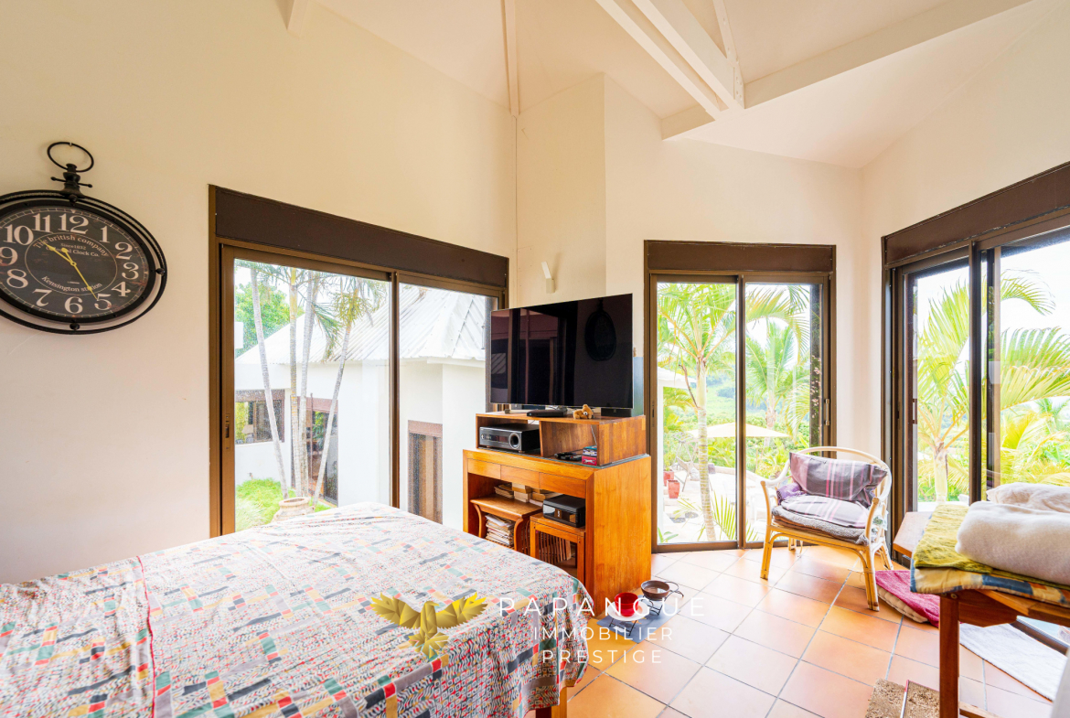 La propriété s’étend sur plus de 3 200 m2 de terrain entièrement paysager et verdoyant, véritable écrin naturel préservé. Le jardin accueille de nombreuses essences endémiques et un verger foisonnant : manguiers, litchis, avocatiers, fruits de la passion, et une grande variété d’arbres fruitiers. Un chalet indépendant déjà en place complète les extérieurs, offrant un espace additionnel à aménager selon vos envies.
