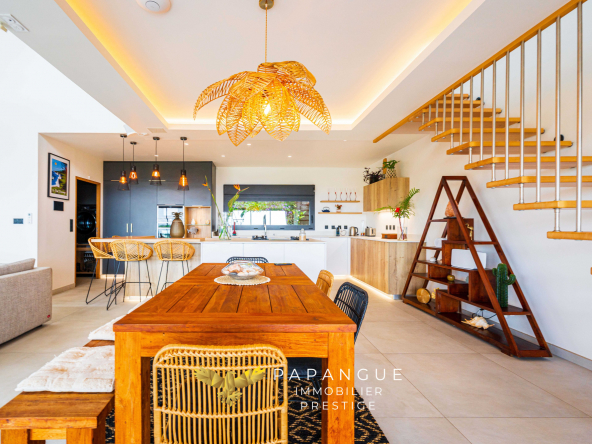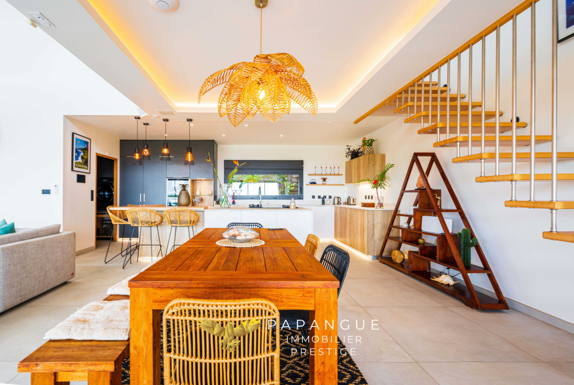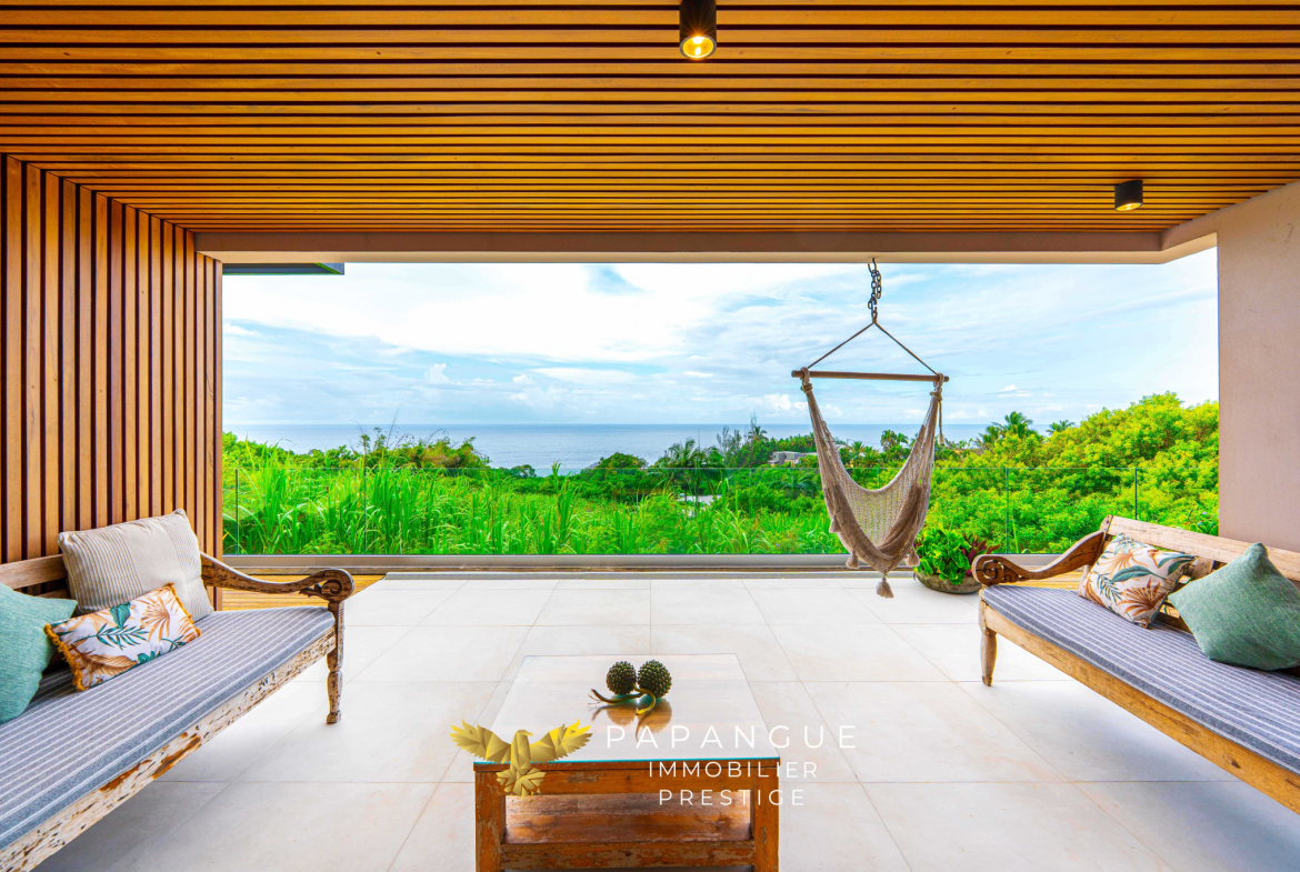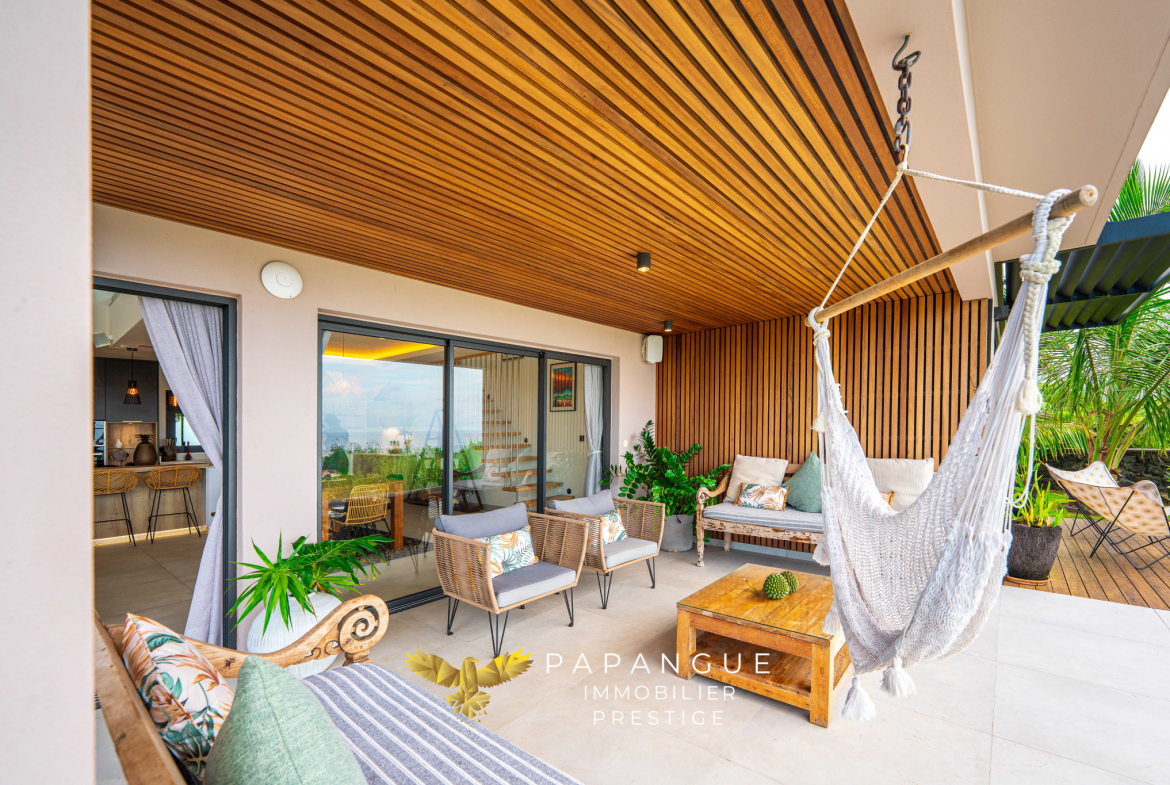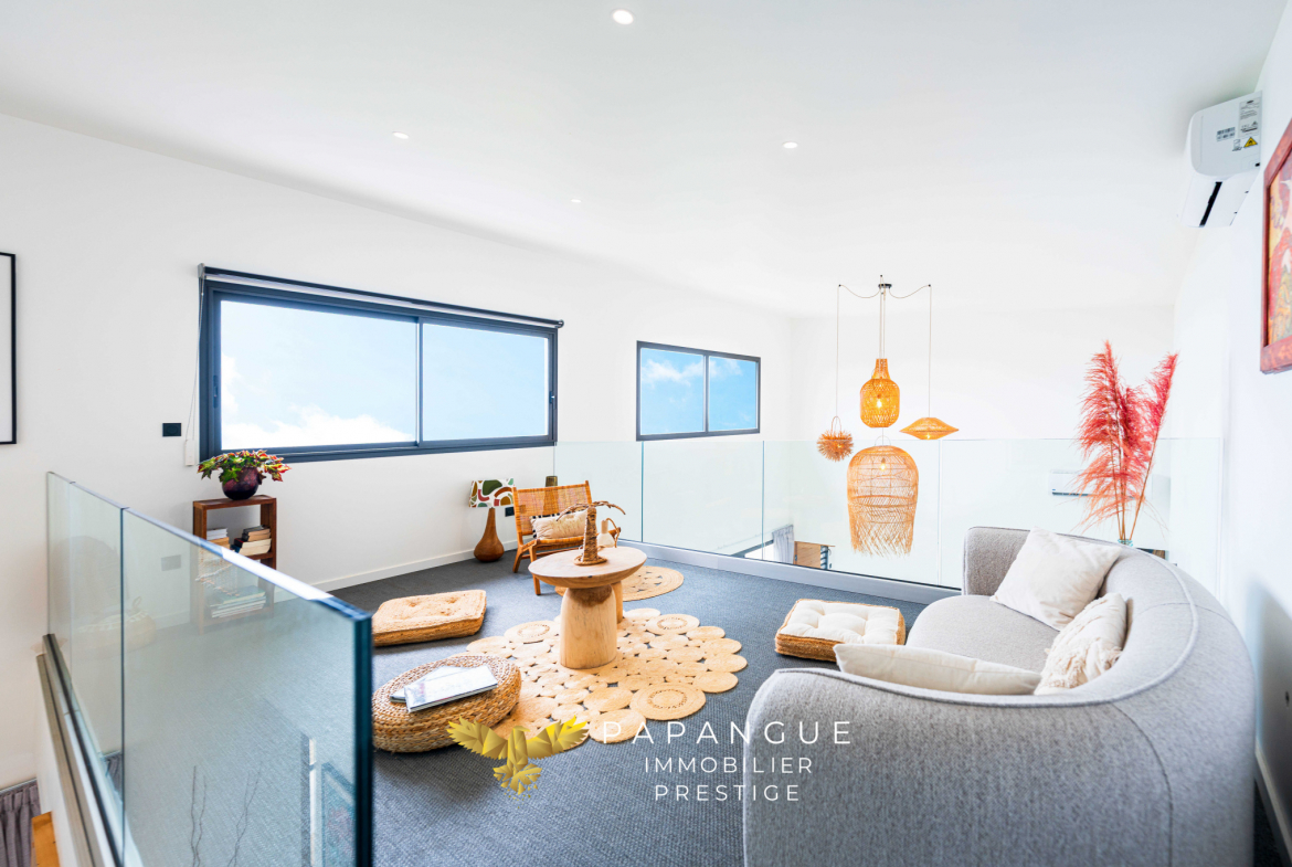 Papangue Immobilier Prestige La Réunion a le plaisir de vous présenter en EXCLUSIVITE cette somptueuse villa d’architecte de 2022, d’une surface de 173 m2 sur un terrain de 922 m2, offrant un cadre de vie idyllique avec une vue imprenable sur l’océan. Idéalement située dans un environnement maîtrisé et préservé en bout d’impasse, sans vis à vis, cette propriété allie confort, sécurité, élégance et art de vivre tropical.