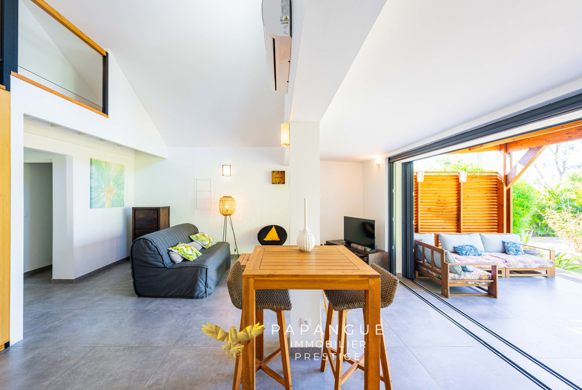 o Une villa T3 d’environ 70 m2, ouverte sur une vaste varangue, véritable pièce de vie extérieure où l’on profite pleinement des alizés et des couchers de soleil sur l’océan.