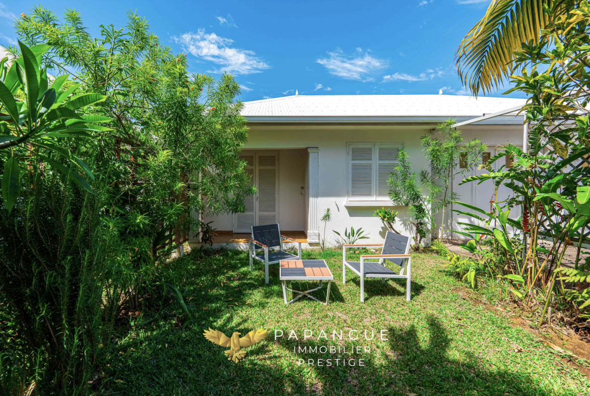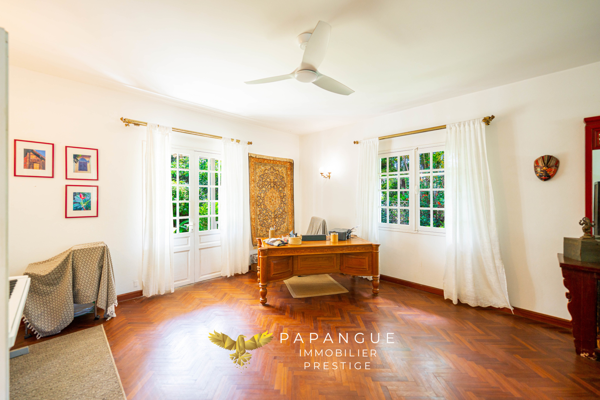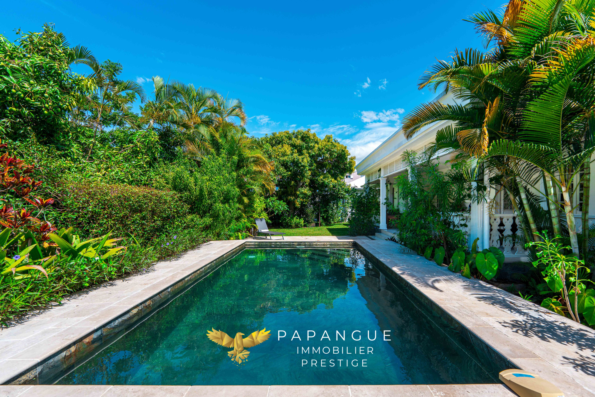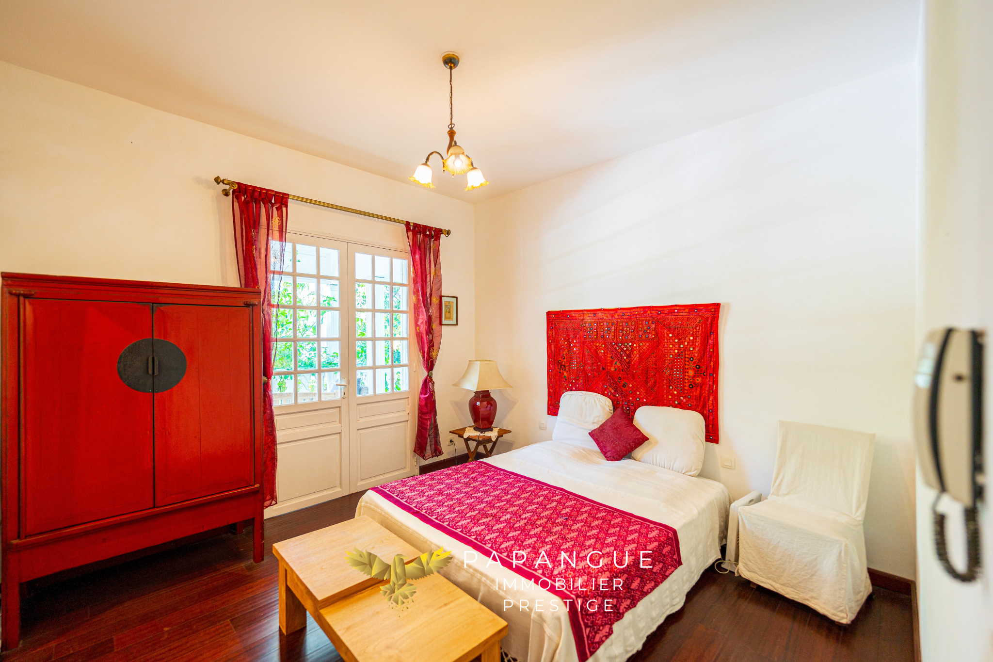 Cette demeure créole de la fin des années 80, parfaitement intégrée à son environnement, s’épanouit au coeur d’un jardin luxuriant, richement arboré de fruitiers et de nombreuses essences tropicales. La maison principale séduit dès les premiers instants par son atmosphère chaleureuse et élégante : un vaste séjour sublimé par un parquet en bois, une bibliothèque, un salon de réception, et une cuisine aménagée pensée pour la convivialité.